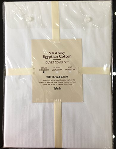 Set da letto formato da copripiumino e federa per cuscino in morbido e setoso cotone egiziano, di alta qualità (cotone da 200 fili), con splendida confezione, Cotone egiziano, White, Singolo