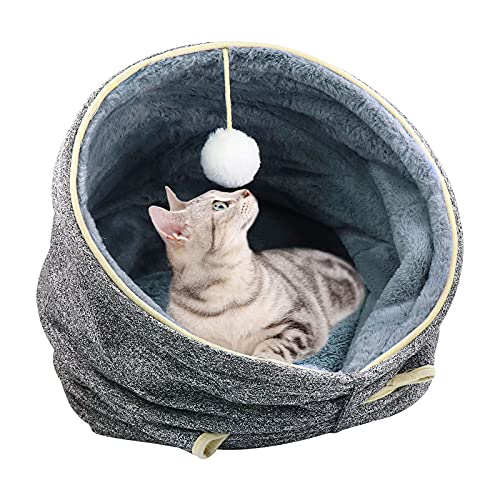 TZL Letto per Gatti Medi Piccolo, Pieghevole Cuccia Gatto Chiusa Interno Morbida e Confortevole, 39 * 39 * 37 cm (Grigio)
