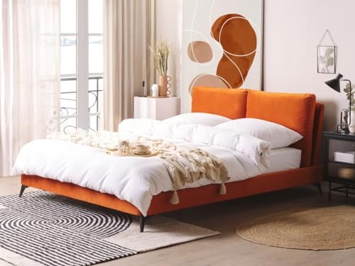 Letto Imbottito Moderno in Velluto Arancione 160 x 200 cm Melle