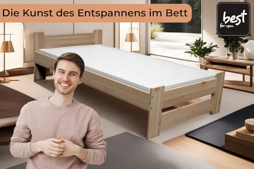 Best for You - Letto matrimoniale in legno massiccio, letto matrimoniale futon, in legno massello naturale, 100% legno naturale, con testiera e rete a doghe senza materasso, diverse misure (80 x 200