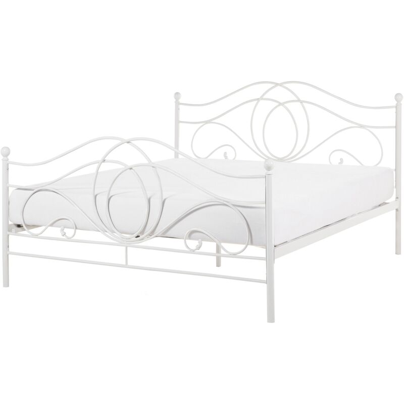 Romantico letto in metallo. Porta un tocco di romanticismo in camera da letto con questo letto con rete a doghe. Realizzato in solido metallo verniciato a polvere è facile da pulire, mentre le sue forme sinuose aggiungono un tocco di eleganza. Dettagli: Tipo di prodotto: Letto matrimoniale Stile: Retrò Colore principale: Bianco Tipo di materiale: Metallo Materiale principale: Acciaio Materiale secondario: Legno di pioppo Parte posteriore rivestita: Sì Finitura: Trattamento a polvere Dimensioni: Dimensioni poggiatesta: 147x103 Larghezza: 147 cm Lunghezza: 211 cm Altezza: 103 cm Superficie di sdraio: 140x200 cm Peso: 23 kg Portata massima: 250 kg L'offerta include: 1 x Struttura letto, 1 x Rete (24 doghe flessibili), Non include: Materasso, tessili e cuscini Caratteristiche chiave: Adatto a ogni tipo di materasso, La struttura integrata assicura massima stabilità, Design elegante, Materiali di alta qualità, Robusta struttura Guida al montaggio: Da assemblare. 45-60 min. Informazioni