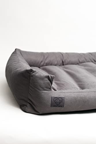 Lusso letto per cani fatto a mano: il tessuto %100 di cotone turco rende il letto forte e resistente, morbido e traspirante. Grazie alla copertura per letto per cani LULVY, il tuo cane si sente a suo agio sul letto. Cuscino centrale con imbottitura in memory foam e rinforzi laterali imbottiti in fibra di alta qualità, fornisce un ambiente confortevole, sano e di qualità.
