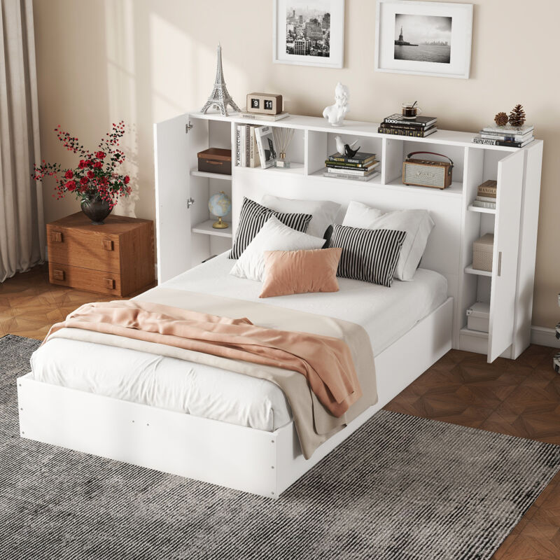 Letto piano 140*200 cm con testiera e vani portaoggetti multipli, bianco Questo letto moderno in stile minimalista è realizzato in materiale MDF, che non solo ha una struttura robusta e un'elevata resilienza, ma è anche semplice e bello di colore bianco e si adatta perfettamente ai diversi ambienti abitativi. Il design sofisticato e pratico della testiera non solo offre molto spazio per riporre gli oggetti, ma si adatta anche perfettamente al letto, sottolineando l'armonia e l'unità del design complessivo. Che sia pratico o estetico, questo letto è ideale per creare una camera da letto moderna e minimalista. Descrizione + Dimensioni Materiale letto: MDF Dimensioni: 140 x 200 cm Colore: Bianco Numero di colli: 4 Assemblaggio richiesto: Sì Origine: Cina Dimensioni del prodotto: 226,5 x 209 x 120 cm Dimensioni imballo: Si prega di notare le specifiche Dimensioni interne letto: 140 x 200 cm Altezza totale: 120 cm Portata: 200 kg Numero di reti a doghe: 15 pezzi Spessore materasso