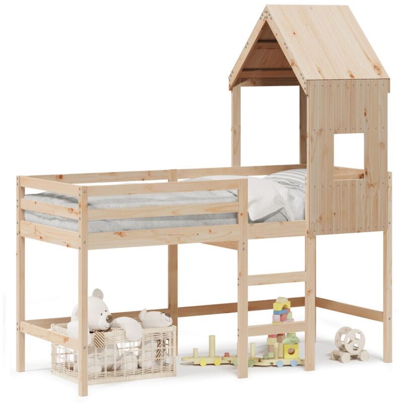 Questo letto a soppalco per bambini è stato realizzato in legno massello di pino e progettato per il divertimento e l'ottimizzazione dello spazio. Legno massello di pino: Il legno massello di pino è un bellissimo materiale naturale. Il legno di pino ha le venature dritte e i nodi conferiscono al materiale il suo caratteristico aspetto rustico. Completo sfruttamento dello spazio: Questo letto a soppalco singolo è rialzato di 78,5 cm da terra e offre un ampio spazio sottostante per riporre oggetti o per altre attività. Questa zona può essere utilizzata per impilare le scatole portaoggetti, riporre i giocattoli di grandi dimensioni o addirittura posizionare un divano per la lettura dei bambini. Inoltre, il vostro bambino può utilizzare lo spazio sotto la struttura del letto in legno come base segreta e divertirsi con giochi fantasiosi. Sponde di sicurezza: Il letto a mezza piazza per bambini è dotato di sponde di sicurezza su tutti e 4 i lati, così il vostro bambino potrà dormire senza
