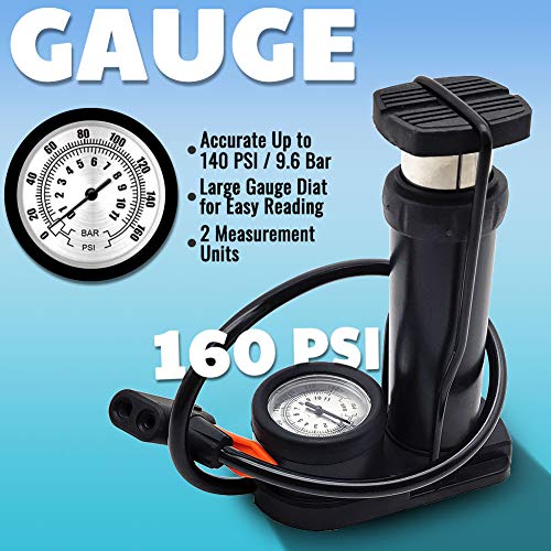 Letton mini pompa per bici con manometro per valvole Presta e Schrader, pompa da pavimento per bici portatile per tutte le bici, attivazione a pedale, con adattatore per palline, anelli di nuoto