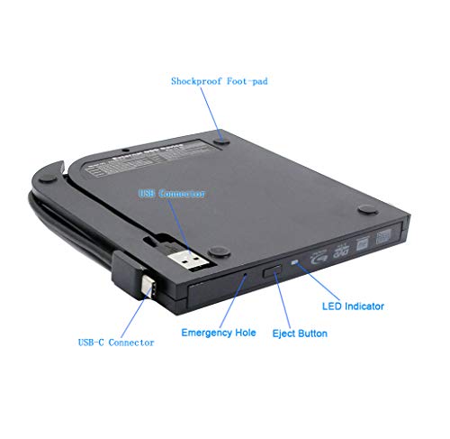 Appositamente progettato con doppia porta USB tipo C e tipo A, supporta Plug and Play, facile da usare. Nessun azionamento e alimentazione esterna necessaria. Basta collegarlo alla porta USB o USB-C e l'unità Blu-ray 4K verrà rilevata. Viene fornito con un pulsante di espulsione standard in modo da non doversi mai preoccupare che il disco rimanga bloccato all'interno di questa unità ottica esterna CD/DVD/BD.