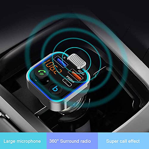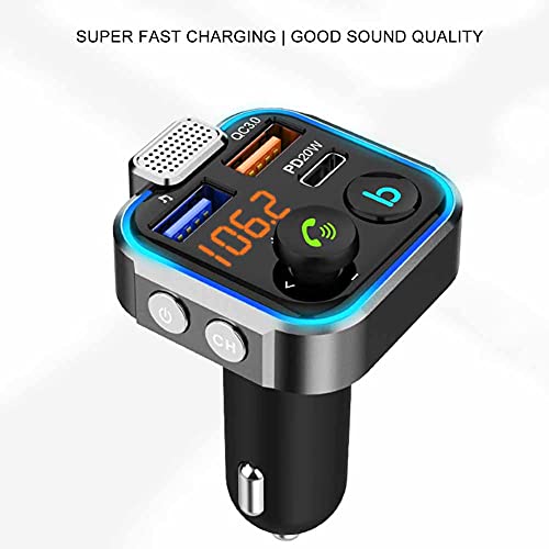 Lettore MP3 per Auto Bluetooth, Chiamata Bluetooth per Auto in Vivavoce Trasmettitore Bluetooth 5.0, Quick Charge 3.0 + Type-C PD 20W Adattatore Bluetooth Wireless con Caricatore a 3 Porte USB