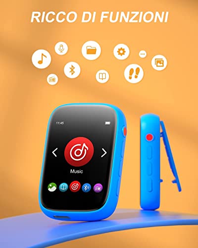 Lettore MP3 Bluetooth 5.0 MECHEN 32GB Schermo Tattile Lettore Musicale con Clip, Ricarica Rapida Type-C, Altoparlante HD Integrato, Radio FM, Pedometro, Max. Espansione da 128 GB