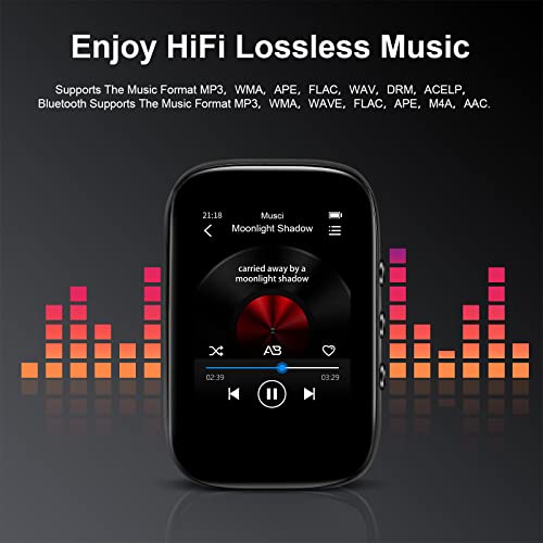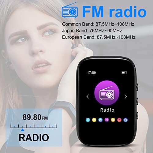 Lettore Mp3 da 32 GB con Bluetooth Sports Clip-on Music Player per Running Walking Support Full-Touch Screen Radio FM Line-in Registrazione vocale Scheda TF Fino a 128 GB-Nero