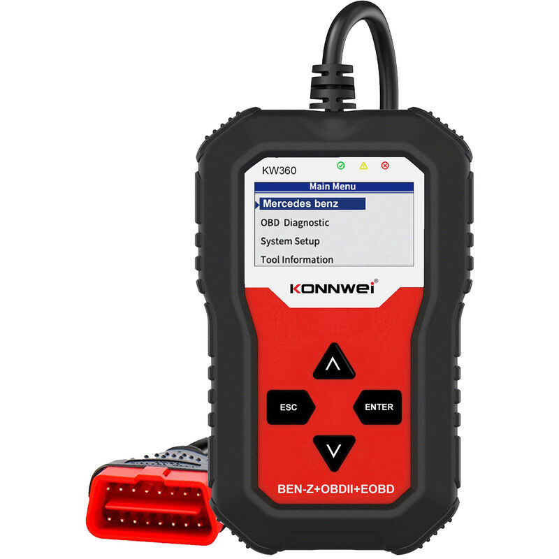 Caratteristiche: KW305 è un sostituto dello scanner diagnostico per auto a sistema completo per Mercedes. Funzioni abbondanti - È in grado di rilevare quasi TUTTI i sistemi: motore, sistema frenante ABS, airbag, cambio automatico, climatizzatore automatico HVAC, sistema di blocco centrale, climatizzatore, immobilizzatore, adattamento acceleratore e così via. Dispone di un ampio schermo LCD retroilluminato di facile lettura, menu multilingue e definizioni DTC e connettore OBD II standard;
