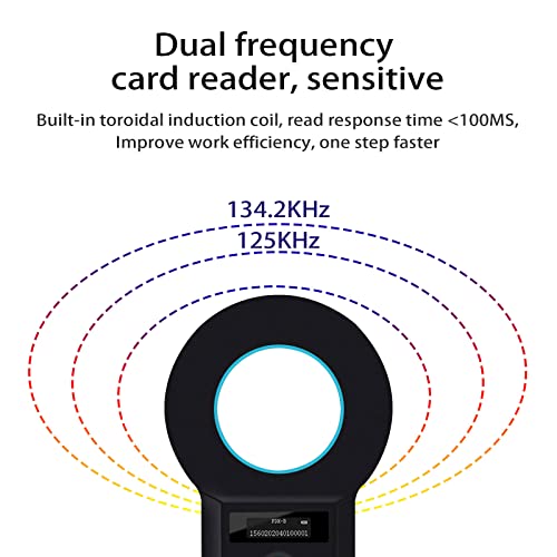 【Lettura Schede Senza Contatto】 Lettore di chip A causa dell'uso della tecnologia RFID ad alta frequenza avanzata, la distanza di riconoscimento è più lunga. L'etichetta del tubo di vetro da 2 a 12 mm è più lunga di 8 cm e il segno dell'orecchio degli animali è più lungo di 8 cm.30 mm più grande di 20 cm (vedi prestazioni dell'etichetta.) Il tempo di lettura è inferiore a 100 ms e l'induzione è sensibile, il che migliora la produttività, facile da usare ed è potente.