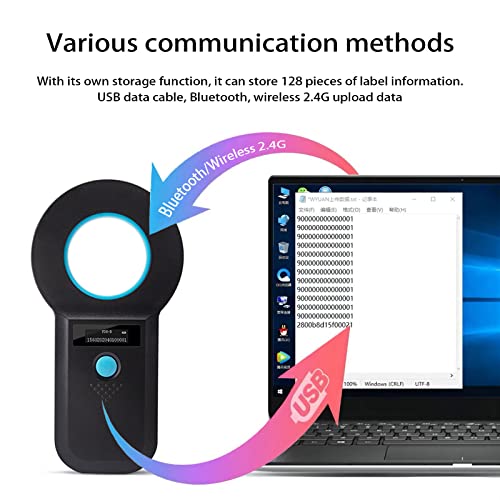 【Lettore microchip cani】 Utilizzare la tecnologia RFID ad alta frequenza avanzata, il tempo di reazione è inferiore a 100 ms, il dispositivo ha una propria funzione di memoria e può risparmiare fino a 128 tag informazioni che possono essere scaricati tramite un cavo dati USB al computer essere in grado
