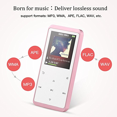 Fatto di Alta Qualità e Durevole Batteria: involucro di alluminio, molto durevole e confortevole sensazione, fino a 50 ore di riproduzione audio con una capacità di 1-2 ore di carica completa, 8GB di memoria, supporta fino a 128 GB Micro SD card.