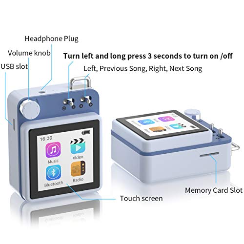 Lettore MP3 MYMAHDI, schermo ad alta risoluzione e full touch, lettore audio senza perdita HiFi da 40 GB con bluetooth 5.0 e altoparlante esterno, radio FM, registratore vocale , fino a 128 GB