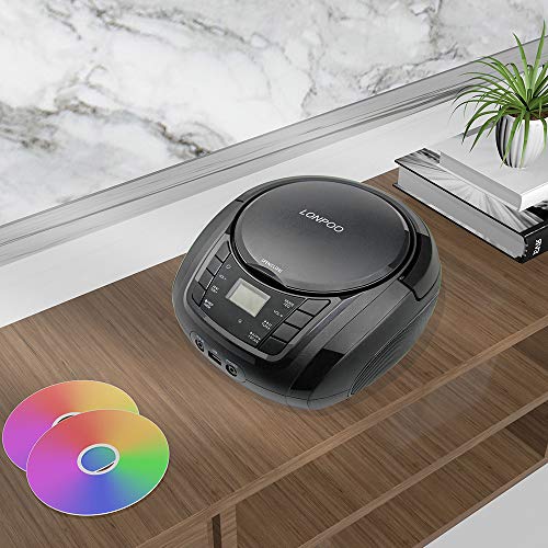Lettore CD Portatile, LONPOO Radio Portatili Boombox Stereo Bluetooth Portatile con Altoparlanti Integrati, Ingresso USB, Ingresso AUX, Uscita Cuffie