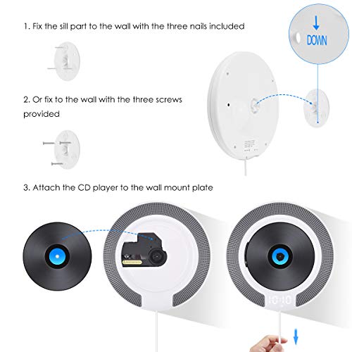 ➤ 【Forte compatibilità】 Questo lettore CD può fungere da lettore CD, altoparlante Bluetooth, lettore di chiavette USB. Supporta file audio D, CD-R, CD-RW, MP3 e WMA da disco flash CD / USB, connessioni AUX o dispositivi abilitati Bluetooth e tutti gli altri dispositivi acustici tramite la presa di ingresso audio da 3,5 mm.