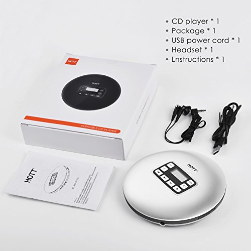 Hott lettore CD portatile, CD Player, lettore CD personale Disman con cuffie, antigraffio Hott, Compact Music CD Walkman, piccolo lettore CD per bambini con protezione Skip per CD, MP3 CD, CD-R, CD-RW