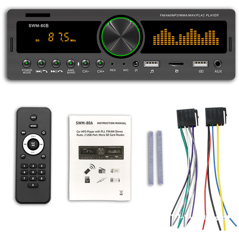 Questo e un lettore per auto multifunzionale, con esso puoi non solo ascoltare musica ma anche fare molte cose, vieni a provare. Caratteristiche: Dopo il parcheggio, i telefoni cellulari possono ricordare la posizione del parcheggio e possono navigare verso la posizione in cui l'auto era parcheggiata in quel momento. Puo registrare musica radio/musica BT/musica AUX su USB. Il lettore musicale puo essere collegato tramite cavo AUX L'ora verra sempre visualizzata dopo lo spegnimento. Dopo aver fermato l'auto e aver guidato di nuovo, il giocatore riprende la posizione in cui la canzone si e fermata e continua a suonare. Specifiche: Tipo: 1, 2 (opzionale) Tipo 1: non supporta il posizionamento Tipo 2: posizionamento di supporto Batterie del telecomando: 1 * AAA (non incluse) BT: 4.0 Tensione: 12~14,4V Temperatura: -10°C~60°C Frequenza audio: 87,5~108,0 Mhz 522~1620 Khz Dimensioni dell'articolo: 188 * 58 mm / 7,4 * 2,3 pollici Profondita host: 60 mm / 2,4 pollici Dimensioni della