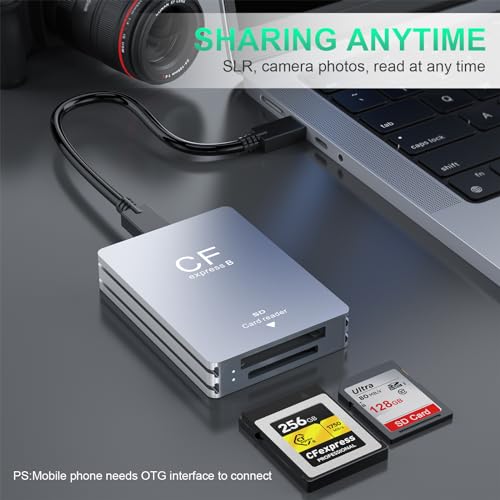 Lettore di schede CFexpress tipo B e USB3.2 SD, CFexpress Type B USB 3.2 Gen 2 10Gbps Thunderbolt 3 CFexpress Type B Card Reader Portatile in Alluminio per Android/Windows/Mac OS/Linux.
