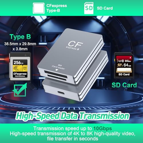 10Gbps Lettore di schede CFexpress di tipo b ad alta velocità ☀ Lettore di schede SD USB 3.2 supporta schede CFexpress di tipo B e schede SD. Trasferite foto ad alta risoluzione e video Full HD al computer in modo più rapido ed efficiente grazie alla velocità di trasferimento dati USB 3.2 gen 2 Super-Speed 10 Gbp/s.: è .
