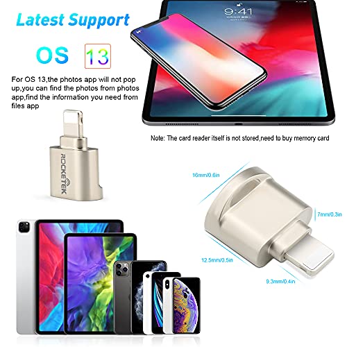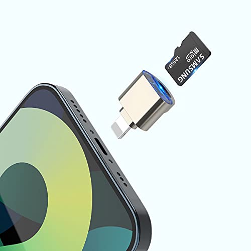 Memoria esterna: Fino a 128 GB di memoria aggiuntiva su iPhone, iPad e iPod. L'adattatore per lettore di schede Micro SD per iPhone è compatibile con le schede di memoria Secure Digital TF card (Mini e Micro SD card), supporta la capacità di archiviazione delle schede Micro SD inferiori a 256 GB (inclusi 256 GB).