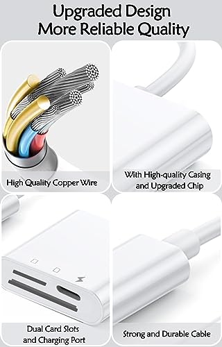 Lettore di schede SD per iPhone iPad, Oliveria Trail Game Camera 2 in 1 lettore di schede SD con doppio slot per Micro SD/SD, adattatore per scheda di memoria fotografica, ricarica e lettura