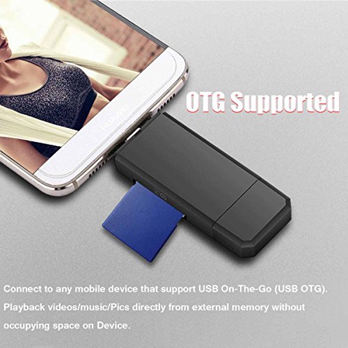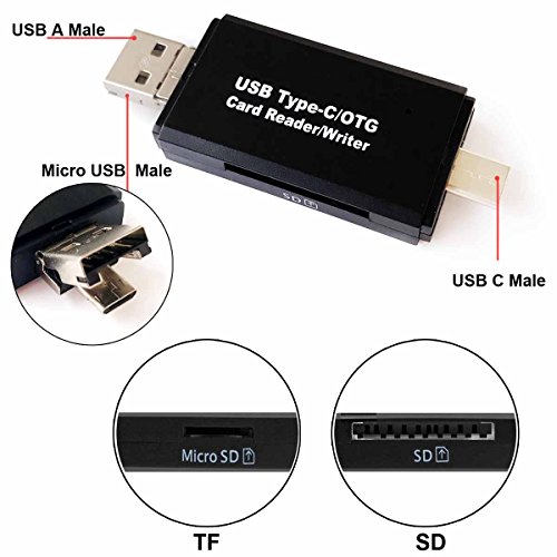 CONNESSIONE SMART 3 IN 1: La spina USB 2.0 standard (tipo A) e la spina micro USB (tipo B) e la spina USB C (tipo C), rendono questo lettore di schede compatibile con tutti i dispositivi e tablet USB C e smartphone Android che supportano Funzione OTG.