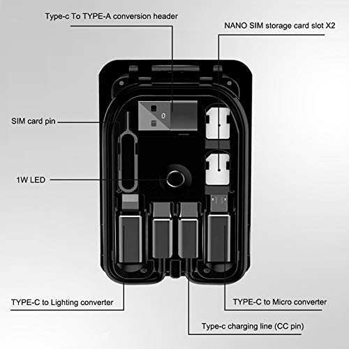 Il tipo wireless: WHD: 89x58x13,4 mm La scatola usb del lettore di schede, una scheda pratica, una scheda 6 usa ①Il Lettore di schede ha Interfaccia di linea di ricarica multi-tipo, adattatore da TYPE-C a TYPE-A, adattatore da TYPE-C a IOS, adattatore da TYPE-C a due vie, adattatore da TYPE-C a Micro, memoria per scheda NANO SIM ② Ricarica wireless: supporta la ricarica wireless. ③Set di strumenti SIM