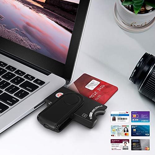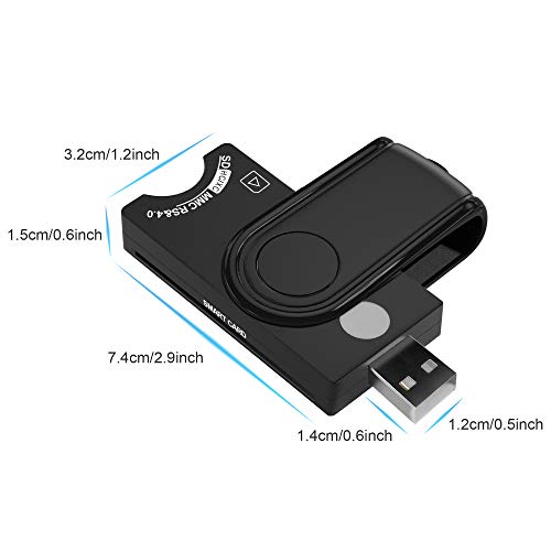 【Lettore smart card 4 in 1】Il lettore smart card tessera sanitaria ha Smartcard + SIM + TF + slot per schede Micro SD, ogni slot per schede può essere utilizzato solo separatamente. Lettore di smart card per tutte le operazioni di smart card a contatto, supporto per carte militari DOD, carte CAC, carte d'identità governative e nazionali, carte SIM, nonché carte intelligenti emesse da banche e uffici postali in tutto il paese, Micro SD (TF) / Micro SDHC/Micro SDXC, SD/SDHC/SDXC, MMC RS & 4.0 ecc.