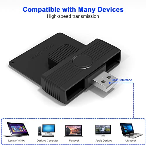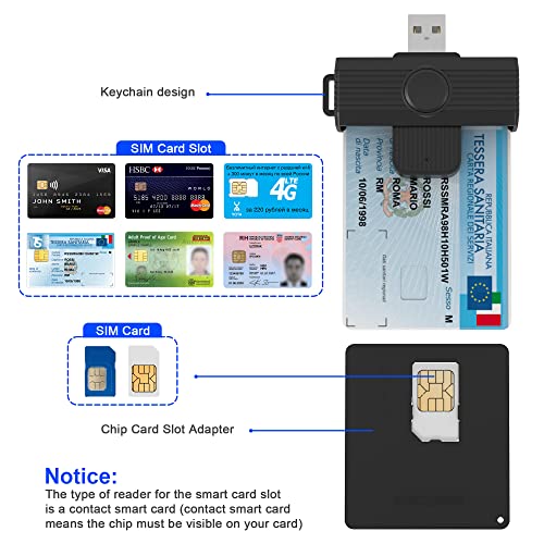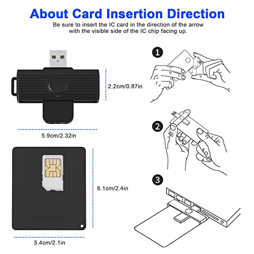 【Smartcard reader CAC 2 in 1】Il lettore di smart card USB CAC ha uno slot 2 in 1 per smart card e scheda SIM, adatto a tutte le operazioni con smart card a contatto (chip visibile sulla scheda), supporto per carte militari DOD, carte CAC, carte d'identità governative e carte d'identità nazionali, banca IC, tessera sanitaria, SIM telefonica carta. Il lettore di carte d'identità è adatto per carte d'identità in formato ID 1, Non compatibile con carte d'identità tedesche e CIE italiane