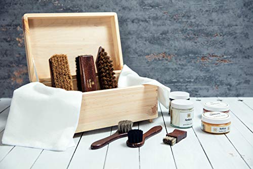 Lettro Kit Box Cura delle Scarpe in Pelle Completa, Set per Cura di Scarpe e Stivali in Pelle, Set di Spazzole in Crine di Cavallo e Kit per Pulizia della Pelle con Confezione Regalo