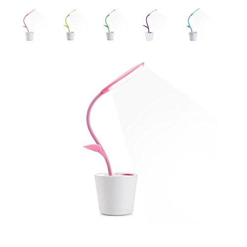 Lettura Lampada Comodino con Porta USB,Eye-care Lampada da Scrivania per Lettura,360 ° flessibile a collo di cigno Lampada Lettura con portapenne,controllo sensibile al tocco 3 Livelli di Dimmerabile Controllo Ufficio TD015 (Rosa)