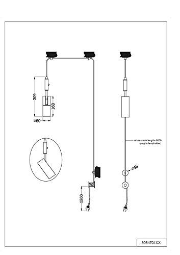 La lampada a sospensione viene fornita con due passacavi, che possono essere montati individualmente per poter utilizzare la lampada in modo versatile.
