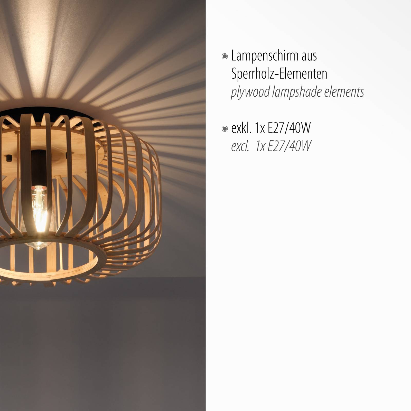 Leuchten Direkt Plafoniera Racoon di legno, fasce;
