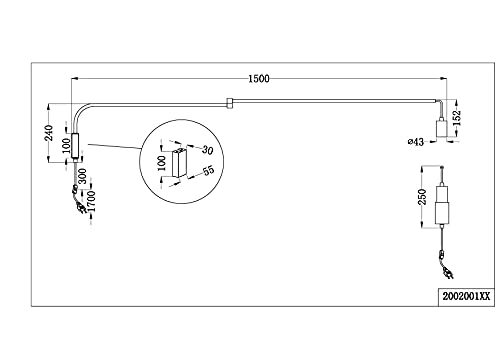 Trio Leuchten Lampada da parete Line 200200132, in metallo nero opaco, non include 1 x E27
