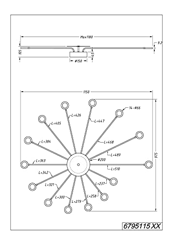 Trio Leuchten Peacock 679511532 - Plafoniera a LED in metallo nero opaco, con 15 LED da 2,6 Watt, dimmer