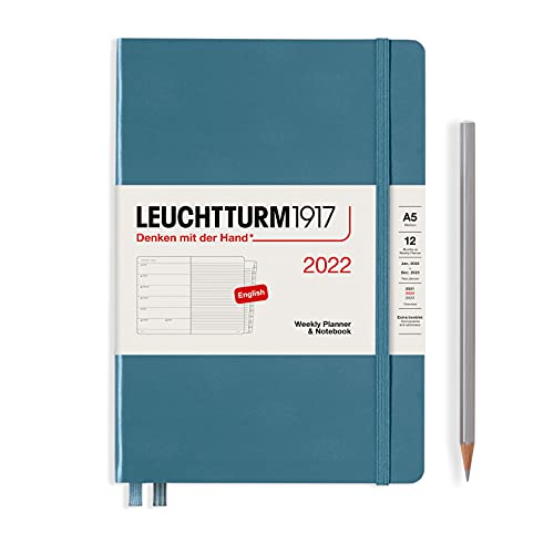 Leuchtturm 1917 (363771) 2022 Agenda settimanale e taccuino con copertina rigida, formato A5, blu pietra, inglese