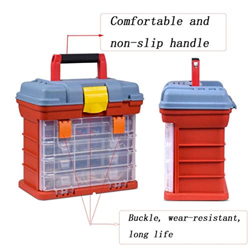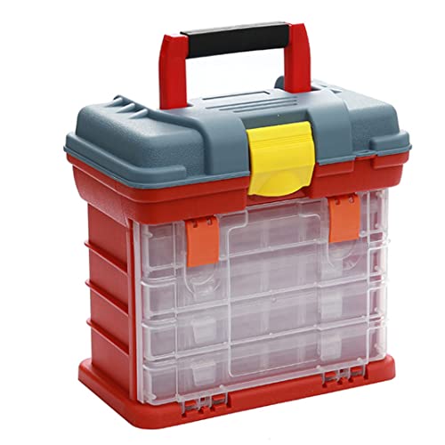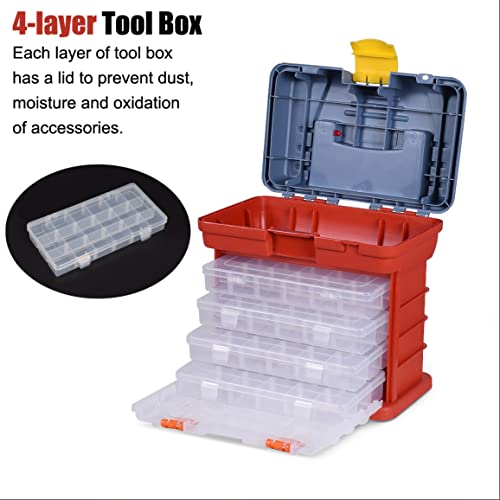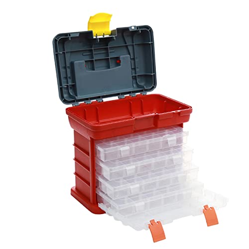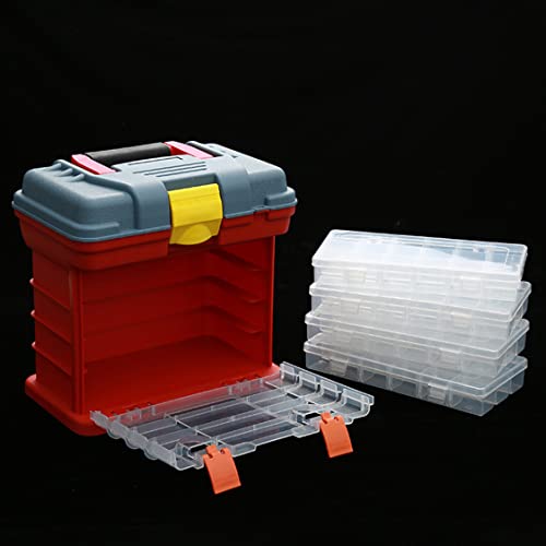 LeuMuas Cassetta portautensili staccabile, organizer a 4 livelli con 72 griglie per viti, dadi e chiavi, cassetta portautensili in plastica portatile di grande capacità con manico, Grigio E Rosso.