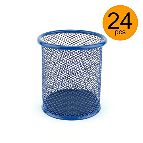 Leviatan - Portapenne in metallo 24 pezzi | Portapenne rotondo in metallo | Organizer da scrivania | Bicchiere multifunzione in rete per penna a sfera Ø91 mm blu navy