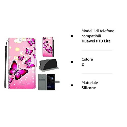 LeviDo Cover Compatibile per Huawei P10 Lite Silicone Libro PU Pelle Magnetica Flip Portafoglio con Corda Disegni Antiurto Bumper Motivo Custodia Resistente Protettiva Case, Farfalla