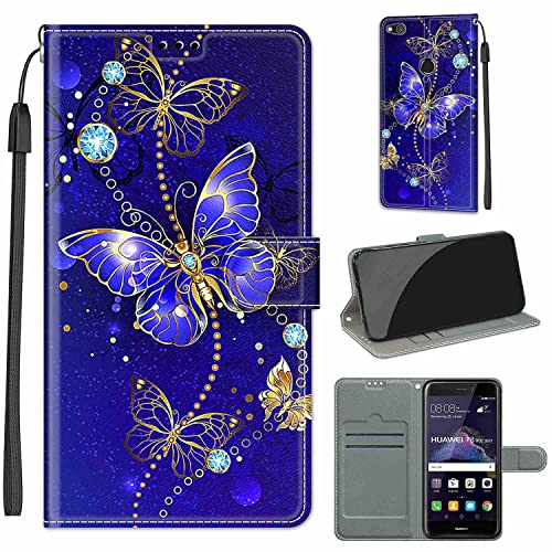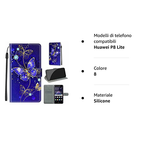 LeviDo Cover Compatibile per Huawei P8 Lite 2017 Silicone Libro PU Pelle Magnetica Flip Portafoglio con Corda Disegni Antiurto Bumper Motivo Custodia Resistente Protettiva Case, Farfalla 1