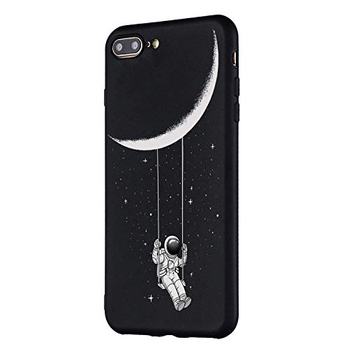 LeviDo Cover Compatibile per iPhone 7 Plus/iPhone 8 Plus Silicone Morbida Nero Case Gomma Bumper Caso Paraurti TPU Gel Protettiva Antiurto, Astronauta