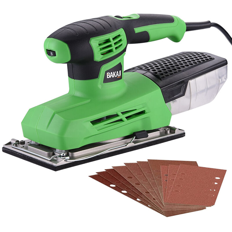 Con la nuovissima levigatrice orbitale di Bakaji potrai levigare e rifinire con la massima facilità ! Maneggevole, versatile, portatile e potente la nuova levigatrice mouse di Bakaji è l'attrezzo che fa per te! Il potente motore da 300W di cui è fornito la levigatrice Bakaji eroga un incredibile velocità regolabile in 6 livelli di potenza che vanno da 6000 a 12000 giri al minuto che offre potenza e velocità di uscita elevate per le applicazioni di levigatura professionali, per un lavoro rapido ed efficiente. La levigatrice orbitale di Bakaji è dotata di testata di 23 x 1,5 cm con un diagramma di oscillazione di 2mm l'ideale per levigare e rifinire legno muratura e tantissimi altri materiali. Inoltre è fornita di sistema di aspirazione della polvere automatico che aspira la polvere provocata dal processo di levigatura incanalandola in un piccolo scomparto di raccolta, ciò garantisce un lavoro di levigatura più efficiente, preciso e sopratutto pulito, inoltre il contenitore di raccolta