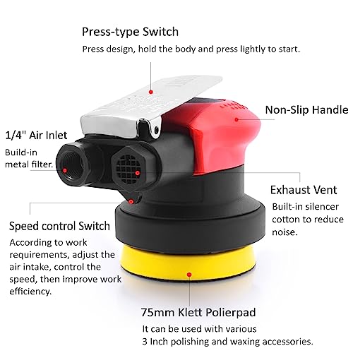 Mini levigatrice orbitale ad aria compressa, 75 mm, carico pesante, multifunzione, per cera e lucidatrice professionale