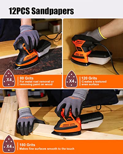 [Carta abrasiva 12 pezzi a densità diversa] La confezione include 3 tipi di carte abrasive a densità diversa per soddisfare esigenze diverse: grana 80 per metallo arrugginito o vernice;