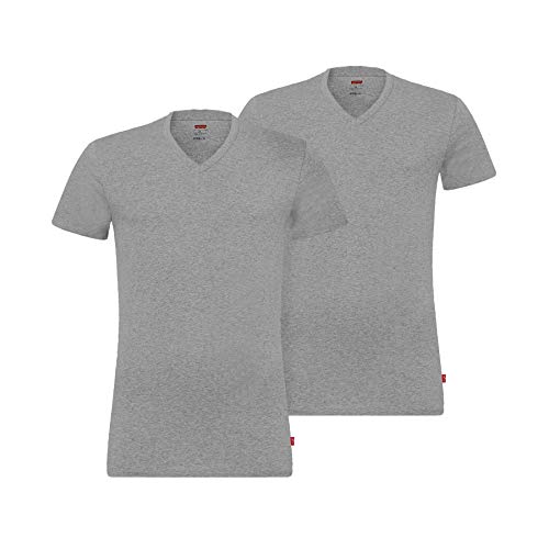 Levi's Levis Men V-Neck 2p T-Shirt, Grigio (Middle Grey Melange 758), S (Pacco da 2) Uomo