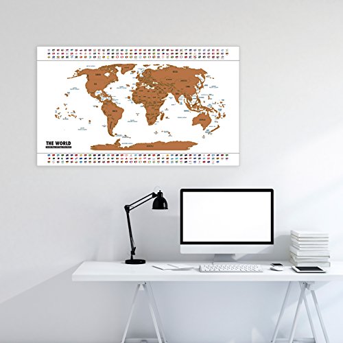 Levivo Con Strato Metallico da Grattare Mondo/Carta Geografica, Paper, Oro, 90x52x0.2 cm