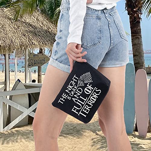 LEVLO Troni Gioco Cosmetico Make Up Bag Troni Game Fan Regalo The Nnight Is Dark And Full Terrors Thrones Gioco Trucco Cerniera Sacchetto Per Amico Famiglia, La notte è nero scuro, Borsa trucco