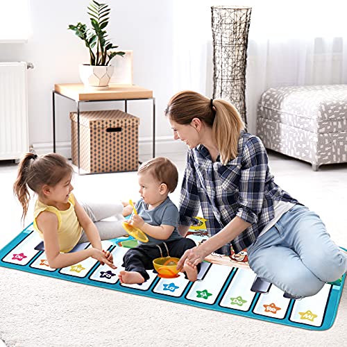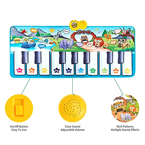 Tappetino per pianoforte per bambini multifunzionale: il tappetino per pianoforte per bambini ha 10 tasti funzione del pianoforte, 6 suoni e pronunce di animali e la musica dolce può simulare l'udito dei bambini. Il suono del pad musicale del pianoforte ha un effetto tremolante e il suono è chiaro. Puoi anche regolare il volume del tappeto musicale per scegliere un volume adatto al tuo bambino.