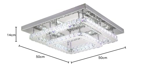 Lewima LED Deckenleuchte »Voltarus«, Glas Kristall Luxus 50x50cm Deckenlampe 36W, Dimmbar per Fernbedienung, mit Speicherfunktion, Warmweiß/Kaltweiß einstellbar, Silber verspiegelt